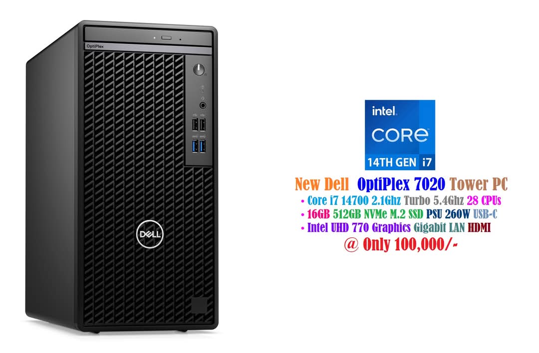 New Dell OptiPlex 7020 Plus Tower Core i7 14700 2.1Ghz 24 CPUs 16GB 512GB NVMe SSD PSU 260W Intel UHD 770 Graphics Gigabit LAN