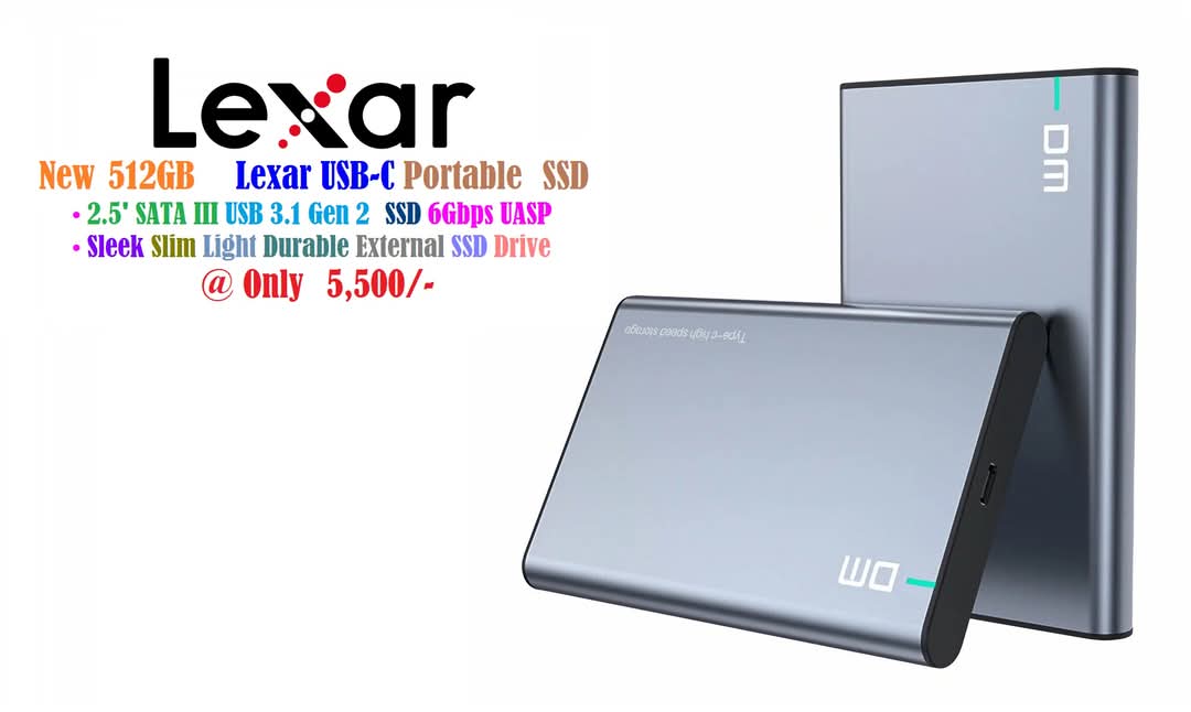 New Lexar 512GB SATA 6Gbps USB-C SSD Portable Drive 2.5′ USB 3.0 UASP 550Mbps Sleek Slim Light Durable External Solid State Drive